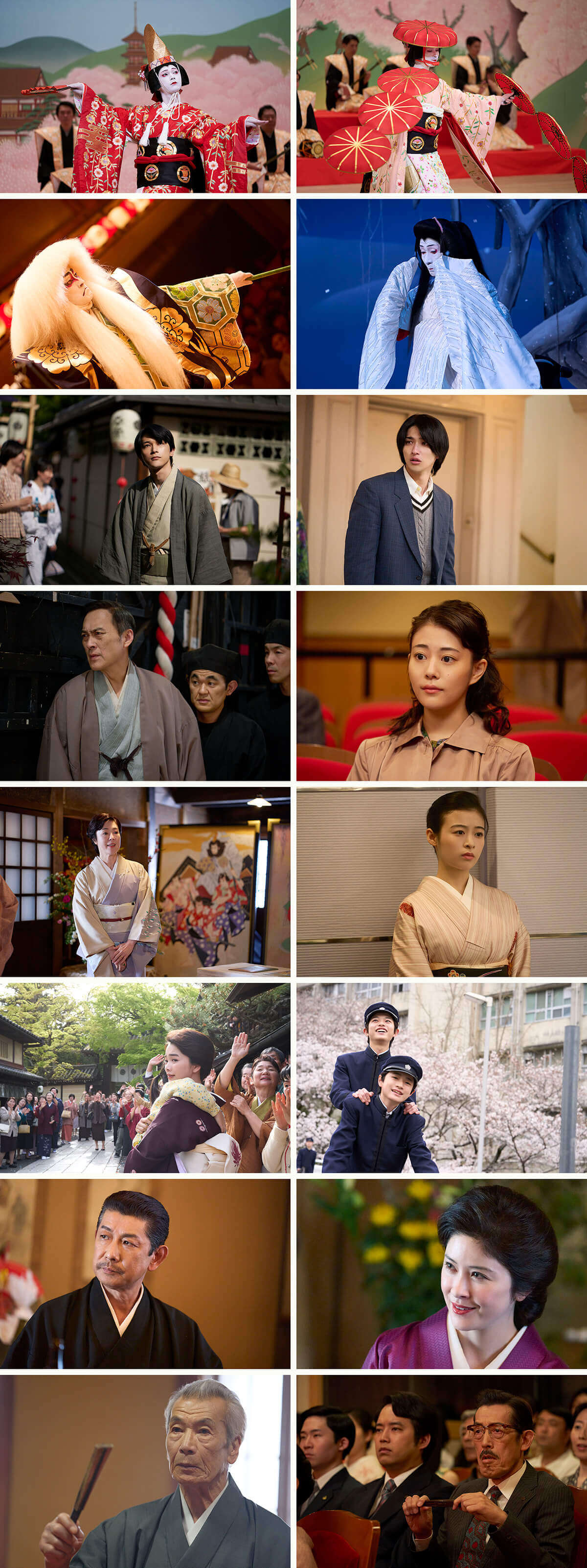 本編冒頭の雪が舞い落ちる中での宴会シーン、喜久雄が初めて訪れた歌舞伎小屋・浪花座、多くの観客の姿――。